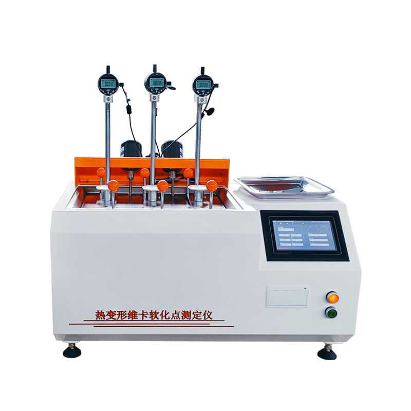 產品特點: ZB-909型熱變形維卡軟化點溫度測定儀適用於測試塑料及高分子材料的維卡軟化點溫度和熱變形溫度,作為控製質量和鑒定新品種熱性能的一個指標,由百分表測量形變,溫控儀設定升溫速度,試樣架自動升降,一次可試驗三個試樣。